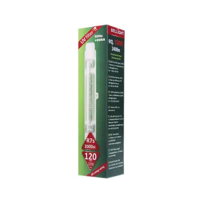 Die Standard Glühlampe Halogen R7s 78mm 230v 120W überzeugt mit einer extra warmweißen Farbtemperatur, der höchsten Farbwiedergabestufe und mit einem R7s-Sockel. Dank diesem ist ein Austausch ganz einfach.