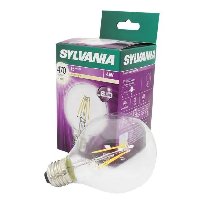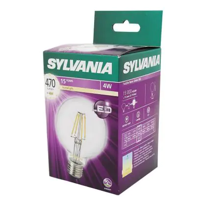 Die Sylvania ToLEDo Retro Globe E27 ist eine moderne LED-Lampe. Durch ihre effiziente LED-Technik ermöglicht sie Energieeinsparungen von 90 %. Die LED besitzt einen E14-Sockel, sowie eine B38-Kerzenform und spendet extra warmweißes Licht mit einer Farbtemperatur von 2.700 Kelvin.