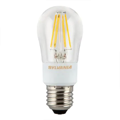 Die Sylvania ToLEDo Retro Ball E27 ist eine moderne LED-Lampe mit Retro-Design. Ihr Verbrauch beläuft sich auf 4 Watt, während sie Ersatz für eine traditionelle Lampe von 40 Watt bietet. Damit sparen Sie fast 90 % an Energiekosten ein. Die LED besitzt einen E27-Sockel und ist in Kugelform erhältlich. Sie spendet extra warmweißes Licht mit einer Farbtemperatur von 2.700 Kelvin.