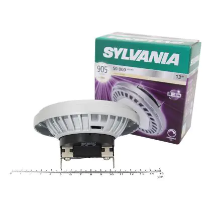 Die Sylvania Superia RefLED G53 AR111 13W 905lm 25D - 830 Warmweiß | Dimmbar - Ersatz für 100W ist eine effiziente G53 LED-Lampe und der perfekte Ersatz für Ihre konventionelle Halogenlampe mit 100W und einem G53-Sockel, bei dem die beiden Stifte einen Abstand von 53 mm zueinander haben. Die Abkürzung AR111 zeigt Ihnen, dass der Reflektor einen Durchmesser von 11 cm hat. Zudem strahlt das Produkt Licht in der Farbtemperatur 3000K - Warmweiß aus und punktet durch eine lange Lebensdauer.