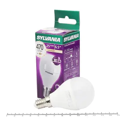 Die Sylvania ToLEDo Ball E14 Matt zeichnet sich durch einen geringen Stromverbrauch von nur 6,5 Watt aus. Dies ermöglicht Ihnen erhebliche Energieeinsparungen. Die LED hat einen E14-Sockel, sowie eine P45-Ballform, und spendet warmes Licht mit einer Farbtemperatur von 2.700 Kelvin.