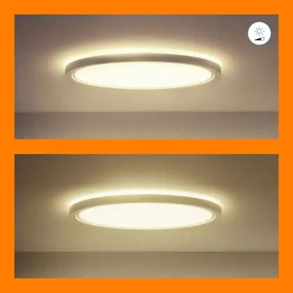 4. Dim to Warm: Durch Dimmen wird das Licht wärmer (gelber). Je stärker Sie dimmen, desto wärmer wird die Farbe.